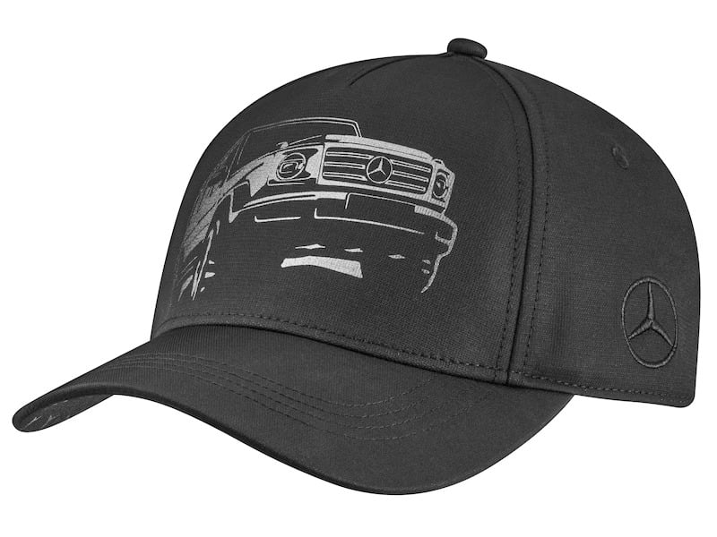 Whether in leisure, sport or out on the race track. The black baseball cap offers reliable protection against sun or rain. The 5-panel cap not only impresses with details such as the tonal Mercedes star embroidered on the left side, the G-Class vehicle motif printed in gun metal on the front, or the G-Class patch with model series, camber angle and ramp angle on the right side. Even when it comes to comfort, the cap leaves nothing to be desired - a practical adjustable clip with which the cap can be adjusted ensures a pleasant wearing comfort.